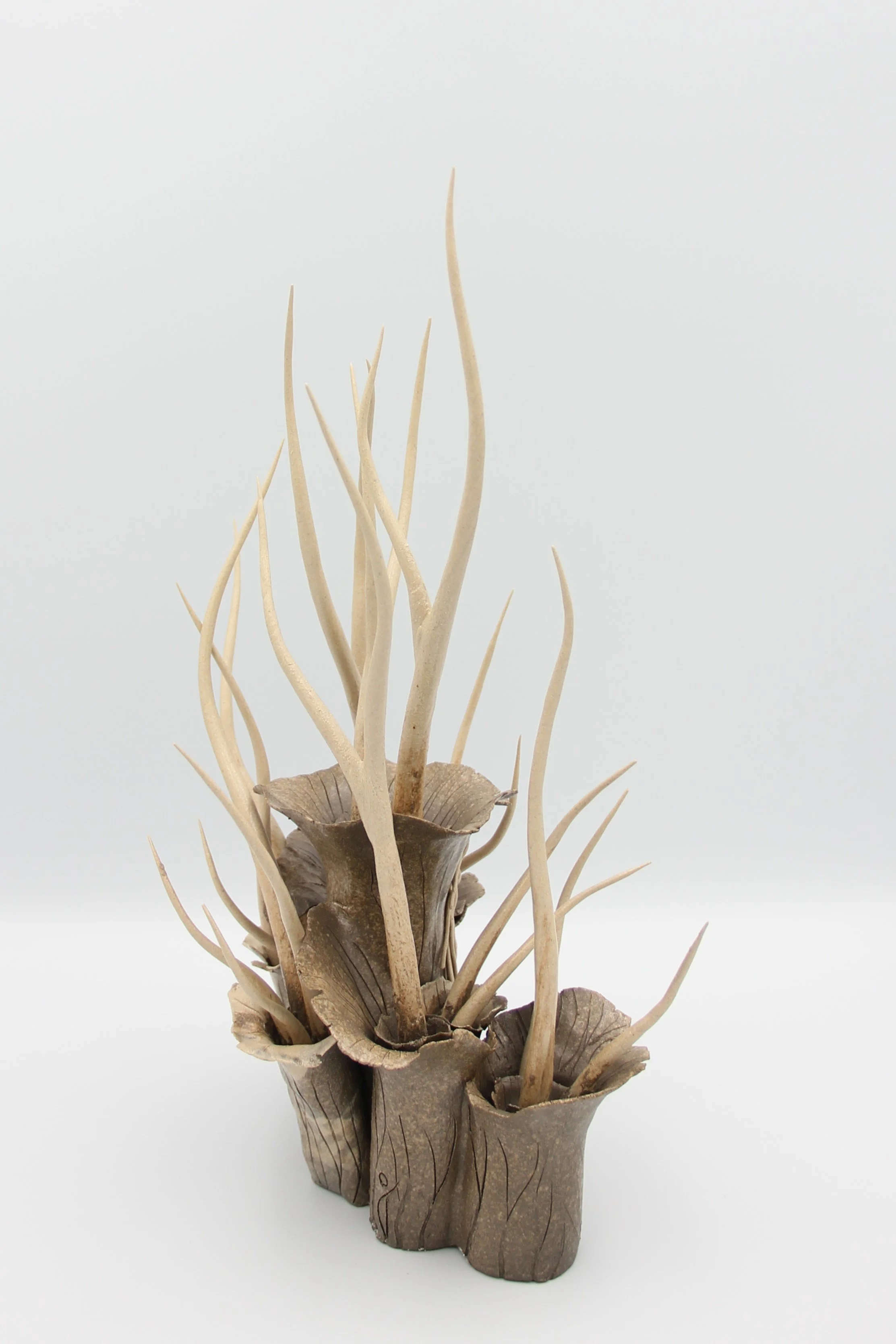Biologiste de formation, elle puise son inspiration dans la beauté et la résilience des arbres. Sculptées et modelées avec délicatesse, ses créations uniques donnent vie à un univers organique où la Nature s’invite dans nos intérieurs. À travers ses pièces, elle rend hommage au vivant et nous invite à préserver notre lien intime avec la Nature.