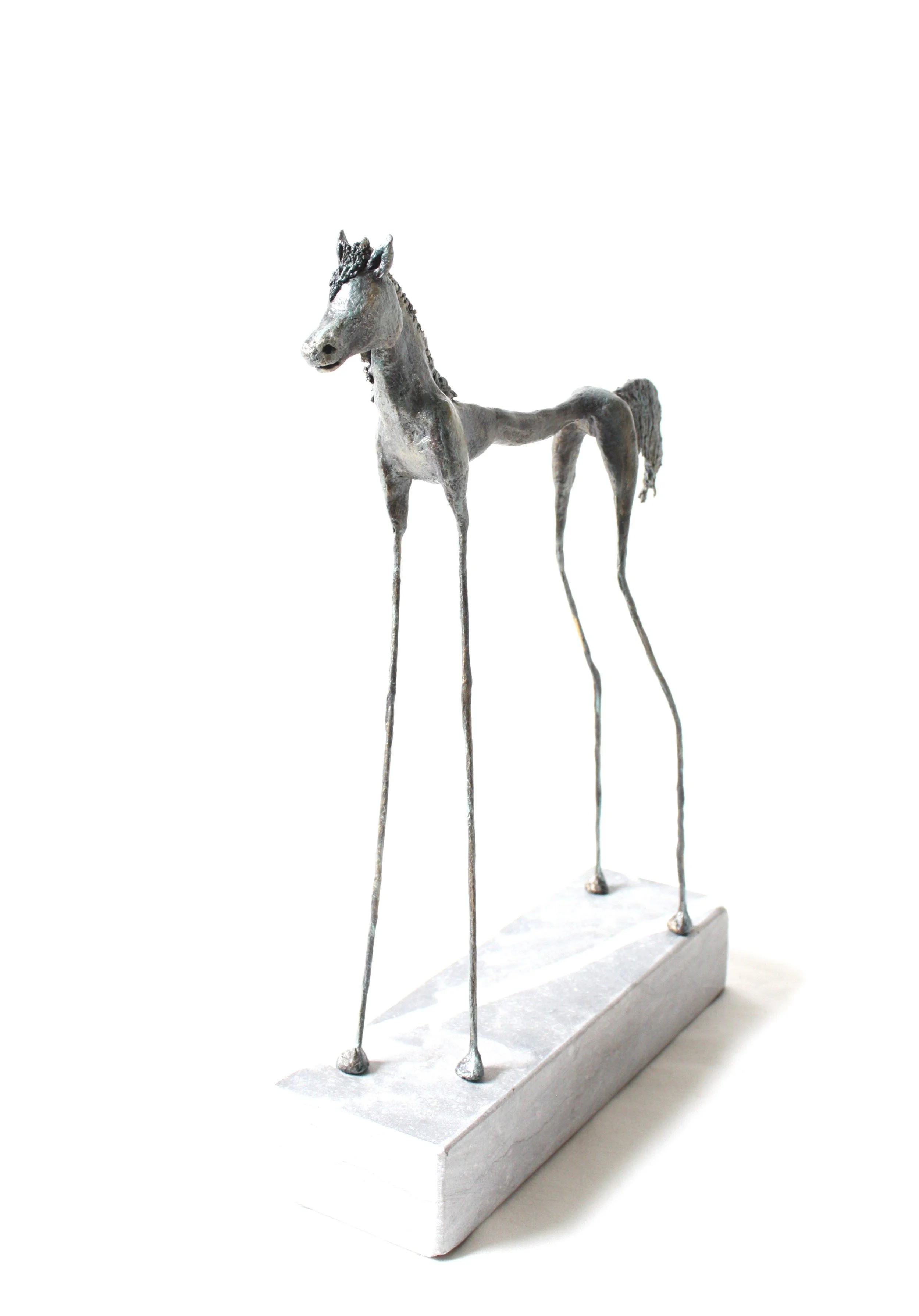 Nadine Ackermans est sculptrice. Elle crée des silhouettes humaines élancées en pâte à bois sur armature métallique, qu’elle façonne jusqu’à leur donner une apparence proche du bronze. Ses personnages, aux corps étirés et aux lignes aériennes, traduisent un équilibre entre ancrage et légèreté. Chaque sculpture capture un geste, un sentiment, comme un instant suspendu dans le mouvement. Son univers épuré et poétique invite à contempler la fragilité et la force qui cohabitent dans chaque forme.